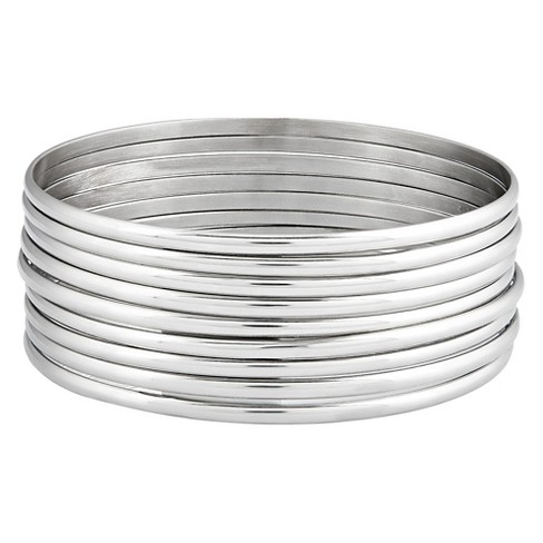 Women S 9 Piece Stackable Bangle Stainless Steel Bracelets 3mm Silver 7 5