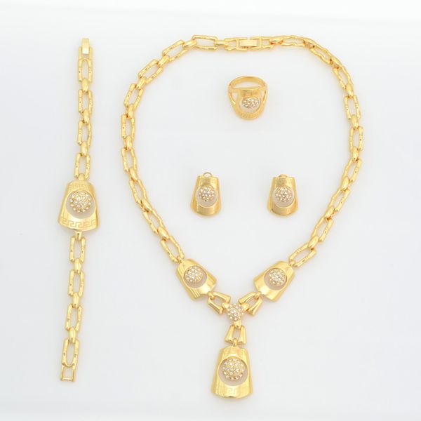 2018 Fashion Women 24 Gold Jewelry Sets Simple Design Necklace Ring Earrings Morocco Bridal Wedding Party Gift Jewelry