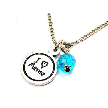 Chubby Chico Charms I Love Meme Child Handwriting 18 Pendant Necklace In Aqua Blue