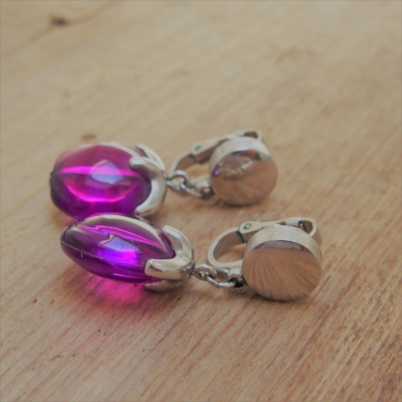 Rare Crown Trifari Purple Lucite Dangle Earrings