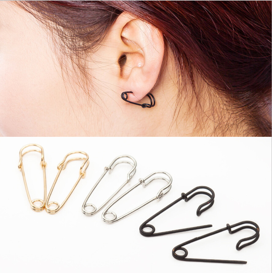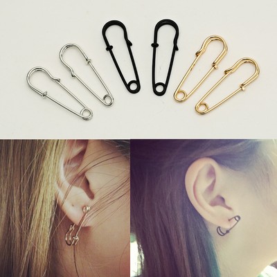 Details About Women Earrings Black Creative Punk Safety Pin Ear Piercing Stud Earring Jewelry