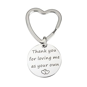 Lemoo Thank You For Loving Me As Your Own Mother Father Fashion Jewelry Gifts Stainless Steel Keychain Key Ring Gift Bag Included Love