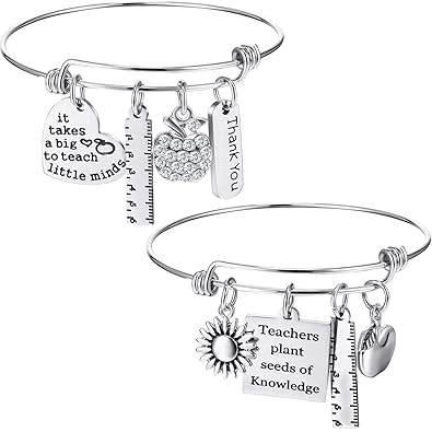 2 Pieces Teacher Bangle Bracelets Teacher Appreciation Gifts With 2 Velvet Bags Thank You Jewelry Gifts For Teacher S Day Graduation Supplies