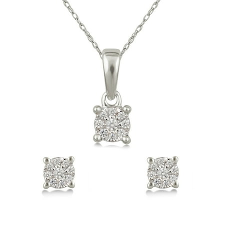1 5 Carat T W Diamond 10k White Gold Earring Pendant Set