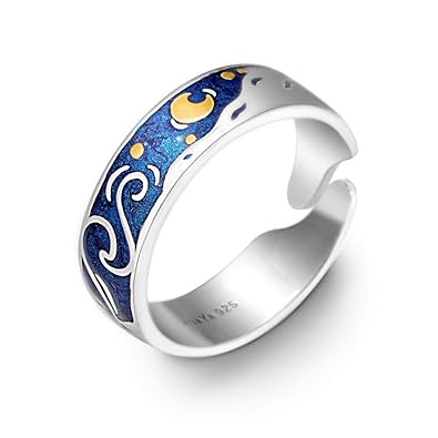 Thaya S925 Sterling Silver Rings Van Gogh S Sky Design Handmade Unique Blue Open Band Ring Promise Ring Size 5 9 5 Jewelry Gift For Women And Girls