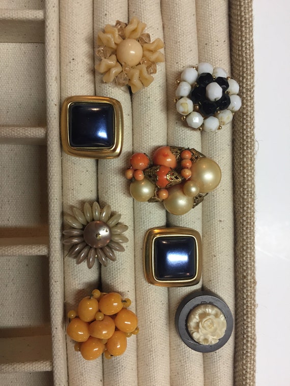 Lot Vintage Costume Jewelry Rings Made From Old Clip Earrings
