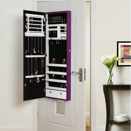Callie Purple Full Length Over The Door Wall Mounted Jewelry Armoire Makeup Storage Organizer Vanity By Inspired Home