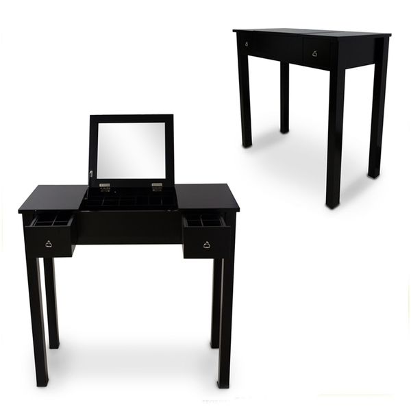 2019 Black Vanity Table Makeup Desk Jewelry Comsetic Storage Organizer With Dressing Mirror And 2 Drawers Usa Stock From Fashionyourlife 150 66
