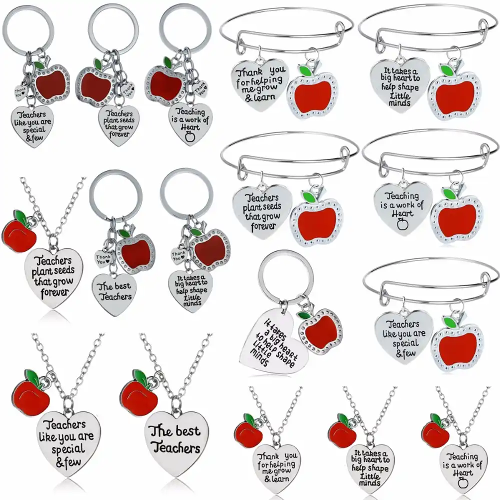 Love Heart Teachers Necklaces Thank You Teachers Gifts Jewelry Apple Charms Keychain For Teacher Bangle Teacher S Day Presents
