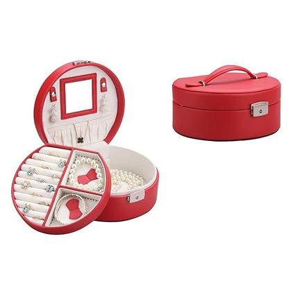 Amazon Com Pu Leather Round Jewelry Box Two Layer Small