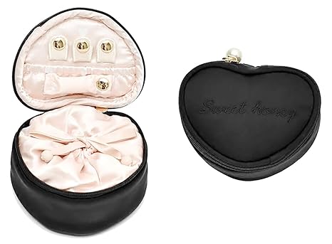 Camelia Women S High End Round Lace Jewelry Case Jewelry Travel Organizer Bag Heart Shape Black