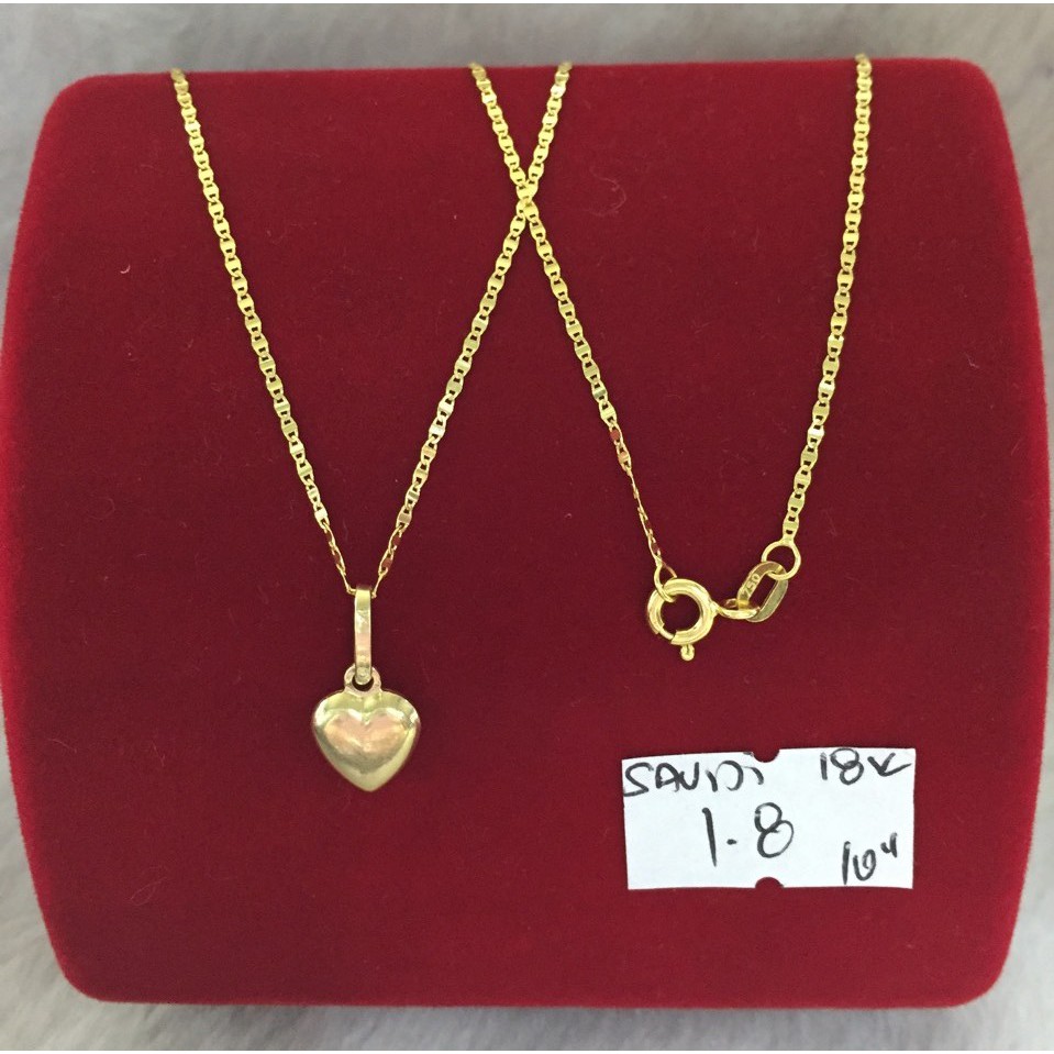 Pure Saudi Gold 18k Necklace W Heart Pendant 0 9 To 1 0g L 18inches