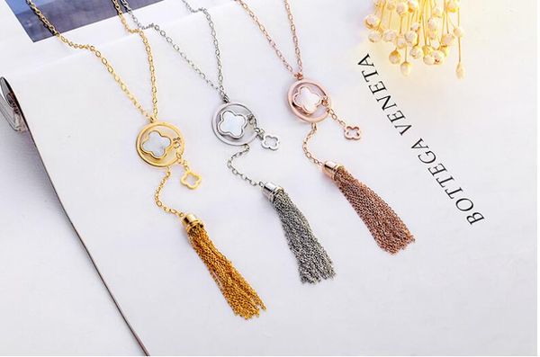 Wholesale Latest Design Saudi Gold Jewelry Necklace 2017 Women Popular Shell Clover Necklace With Tassel Girls Lucky Jewelry Necklace Gift Wholesale