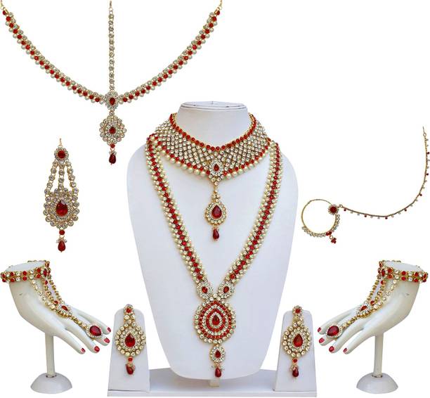 Find huge range of red necklaces bangles earrings bracelets maang tikka and more in latest designs.
