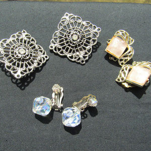 Details About Collectible Vintage Costume Jewelry Brooches Ear Rings