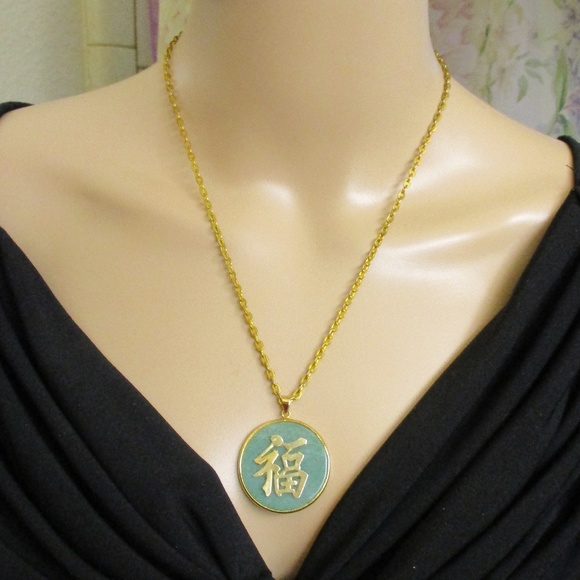 Vintage Chinese Green Jade Necklace Jade Jewelry Vintage Jade Jewelry Jade Longevity Necklace
