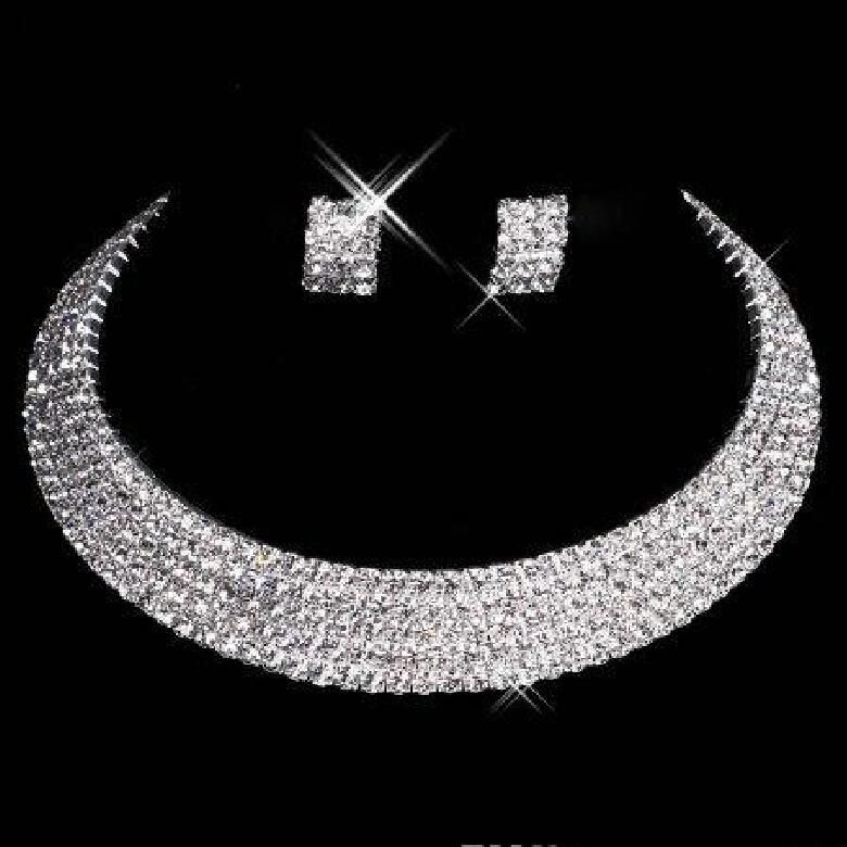 Silver Tone Crystal Tennis Jewelry Sets Choker Necklace Jewelry Set Earrings Bridal Jewelry Wedding Bridesmaid Jewelry Set